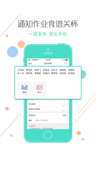 1)家園互動 — 短信發(fā)送、IM及時聊天,隨時隨地架起教師、家長的溝通橋梁,讓家園溝通無處不在。