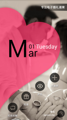 柬訊專注婚禮電子請(qǐng)柬,新增生日邀請(qǐng),精美動(dòng)漫、傳統(tǒng)、唯美等主題模板,1分鐘超簡(jiǎn)易制作,婚期倒計(jì)時(shí)小視頻導(dǎo)航音樂等特色功能,你的感動(dòng),由我見證!免去傳統(tǒng)請(qǐng)柬買、寫、送的繁瑣,動(dòng)動(dòng)手輕松搞定。簡(jiǎn)單易學(xué)的操作流程,通過微信、QQ、微博一鍵發(fā)送給親友,多種分享方式,秀出專屬你們的感動(dòng)時(shí)刻!