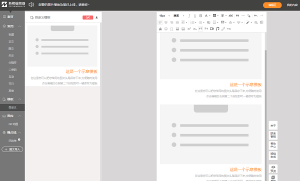 素材進(jìn)入右邊的編輯框,有的需要更改素材里面的內(nèi)容,點(diǎn)擊素材上面的文字,就可以直接編輯了,把你需要的文字編輯到素材上面。有的素材是不能編輯的。