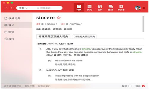 有道詞典是首款互聯(lián)網(wǎng)時(shí)代詞典,通過獨(dú)創(chuàng)的網(wǎng)絡(luò)釋義功能,輕松囊括互聯(lián)網(wǎng)上的流行詞匯與海量例句。支持中英日韓法多語(yǔ)種翻譯,并完整收錄《柯林斯COBUILD高級(jí)英漢雙解詞典》的全部?jī)?nèi)容,以及《21世紀(jì)大英漢詞典》等多部權(quán)威詞典數(shù)據(jù),結(jié)合豐富的網(wǎng)絡(luò)釋義及原聲視頻例句內(nèi)容,共覆蓋1000萬詞條和2300萬海量例句。同時(shí)便捷的攝像頭取詞功能,讓你無需輸入就能快速獲得單詞的準(zhǔn)確釋義。網(wǎng)絡(luò)單詞本可實(shí)現(xiàn)與詞典桌面版的實(shí)時(shí)同步,幫你隨時(shí)隨地輕松背單詞。