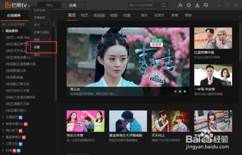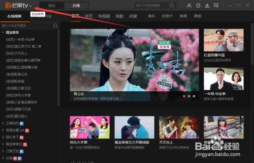 在打開的芒果TV視頻程序窗口,點擊左上角的芒果TV“系統(tǒng)菜單”按鈕。如圖所示