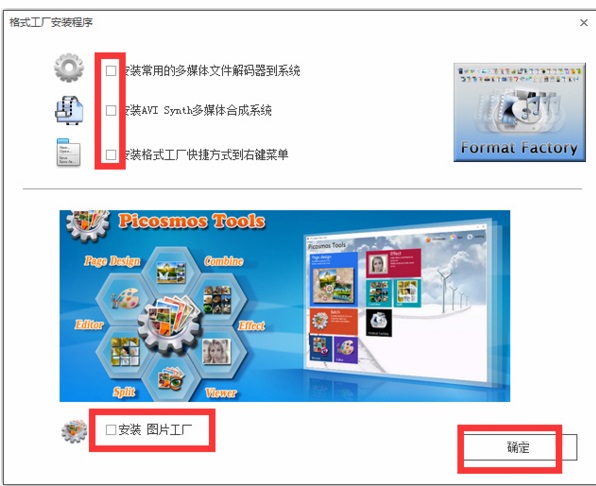 5、安裝成功,去掉不必要的選項,啟動格式工廠