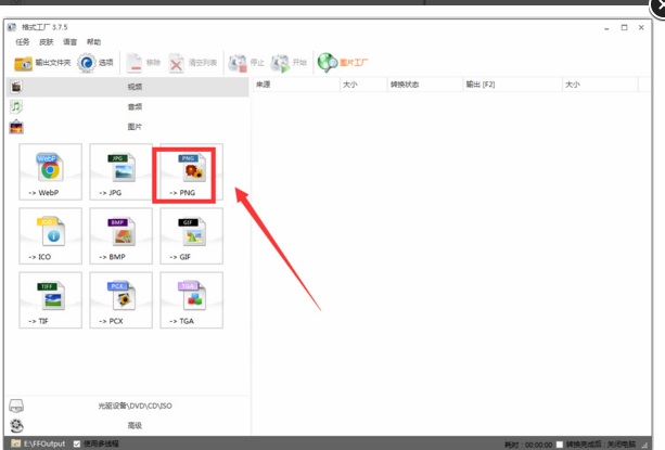 1、選擇你想要轉(zhuǎn)換成的格式。以要轉(zhuǎn)換成“PNG”格式為例,打開軟件后,點擊“PNG”
