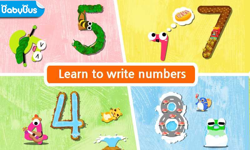 將數(shù)字擬化成各種可愛的形象,按照正確的書寫規(guī)則,搭配上數(shù)十種趣味書寫的形式: