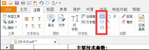 首先介紹的是如何遮蓋。在文檔頂部選項(xiàng)中 ,點(diǎn)擊注釋,會(huì)出現(xiàn)以下,我們根據(jù)自己所需遮蓋部分的形狀,點(diǎn)擊三個(gè)中間相應(yīng)的一個(gè)。點(diǎn)擊之后在所需遮蓋的位置可以拉出該圖案,大小都是可以調(diào)整的。