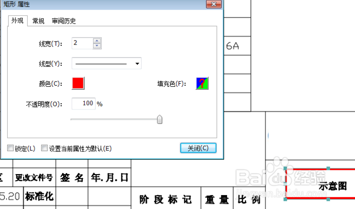 彈出如下提示框,我們把顏色和填充色都改成白色。就會(huì)變成這樣。這時(shí)候關(guān)閉提示框。鼠標(biāo)點(diǎn)擊其他區(qū)域,就會(huì)發(fā)現(xiàn)我們想要遮蓋的地方遮蓋住了。