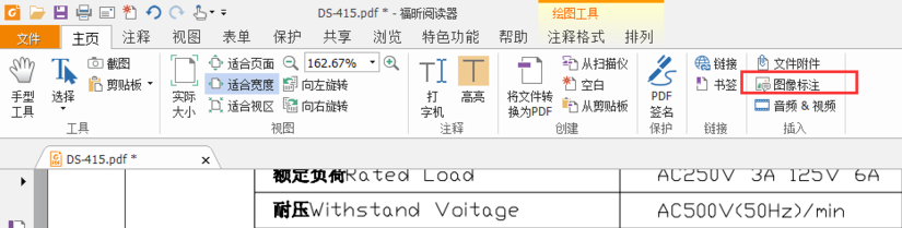 接下來是放上我們所需的文字或圖案,這個(gè)我們事先要編輯好一個(gè)圖片哦,可以在excel表格里處理,這里就不詳細(xì)介紹了。我們選擇到主頁位置,所有選項(xiàng)靠右位置有個(gè)圖像標(biāo)注,點(diǎn)擊圖像標(biāo)注。