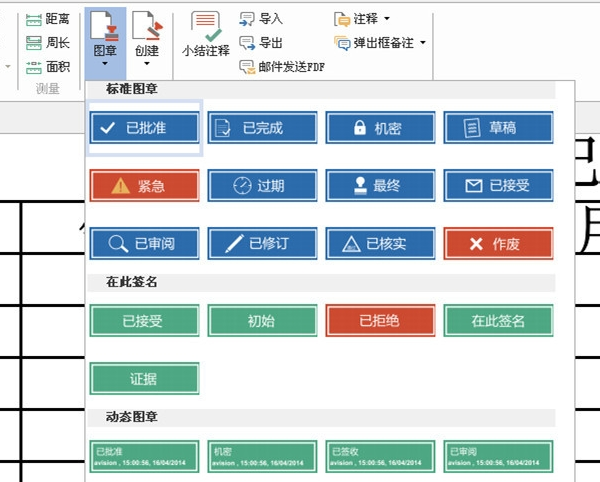 安裝pdf閱讀器后,注釋---圖章,點(diǎn)開圖章。