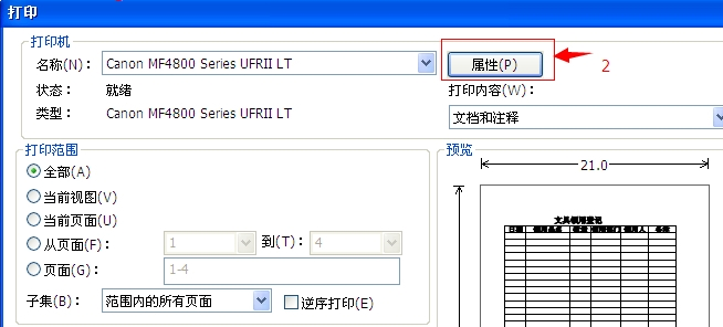 找到打印按鈕打開,打印對(duì)話框中的屬性打開。