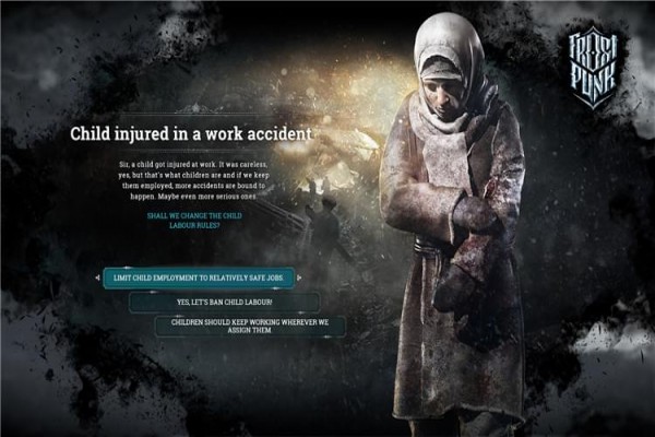你允許雇傭童工嗎?你將如何對(duì)待病人和傷員?《冰汽時(shí)代》不僅會(huì)挑戰(zhàn)玩家的決策能力,還將對(duì)人性提出拷問。