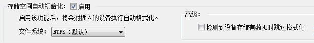 此功能會對插入的設備自動執(zhí)行格式化操作,格式化的文件系統(tǒng)默認為NTFS,同時還可以讓軟件在格式化前先檢查設備是否已經有數據,對于有數據的設備,可以設定讓軟件自動跳過對其的格式化操作。