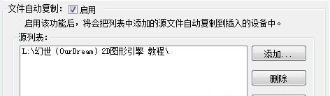 該功能能夠實現將設定的文件數據自動的復制到插入的設備中。你可以在列表中添加多個源數據路徑,軟件會依次將設定的源文件一一復制到設備中。