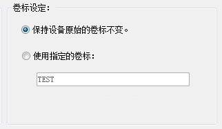 該功能能夠自動將設備的卷標按照設定重新設置,如果選擇“保持設備原始的卷標不變”,那么軟件不會重新設置設備的卷標而是保留原始的卷標。如果選擇“使用指定的卷標”,則軟件會自動將設備的卷標修改為輸入的內容。