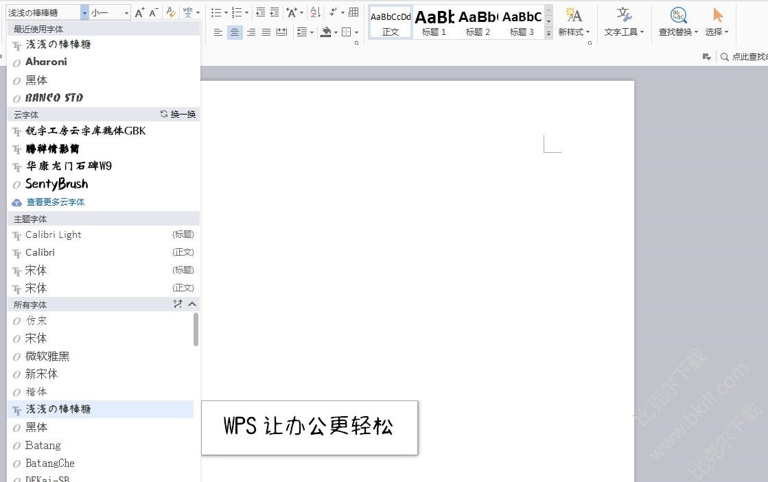 3、打開Word,在選擇該字體,即可使用;