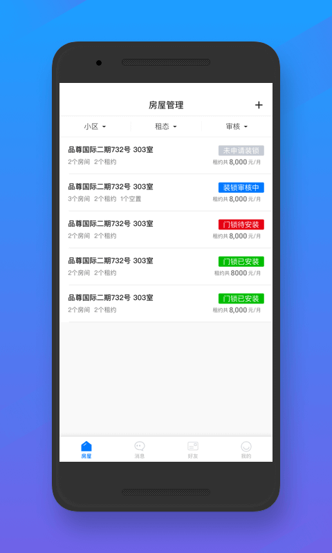 一樓房東app是一款房東智選智能租房的軟件平臺(tái)。一樓房東app幫助房東解決“出租管理” “房租催繳”“在線收租”“費(fèi)用自動(dòng)結(jié)算”“房源推廣"等各環(huán)節(jié)的繁瑣事務(wù),用好好租管理更輕松。通過房屋智能化硬件管理,加快房間快速周轉(zhuǎn),強(qiáng)勢(shì)收房更給力,分期收租多賺錢。