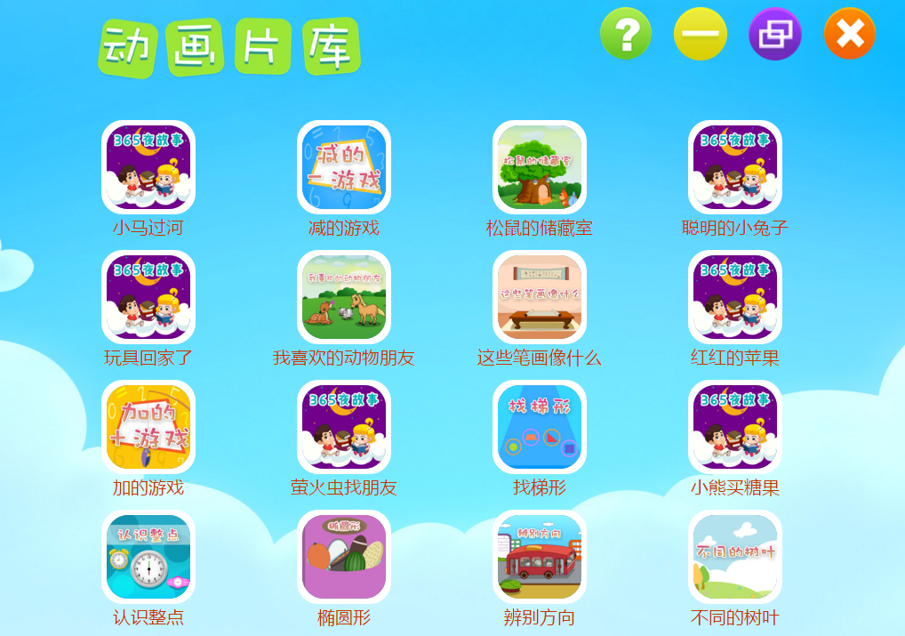 1、幼教素材庫:圖片、聲音、動畫、互動、游戲;
