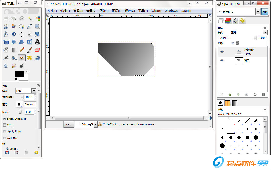 完整的圖像工具套件,包括畫筆、鉛筆、噴槍、克隆等工具。基于平鋪(Tile-based)的內(nèi)存管理使圖像大小限制在可用的磁盤空間內(nèi)。
