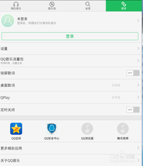 通過更多功能可以進行軟件的設(shè)置和歌詞顯示等操作