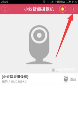 從打開(kāi)的“小蟻智能攝像機(jī)”主界面中,點(diǎn)擊右上角的“+”按鈕。