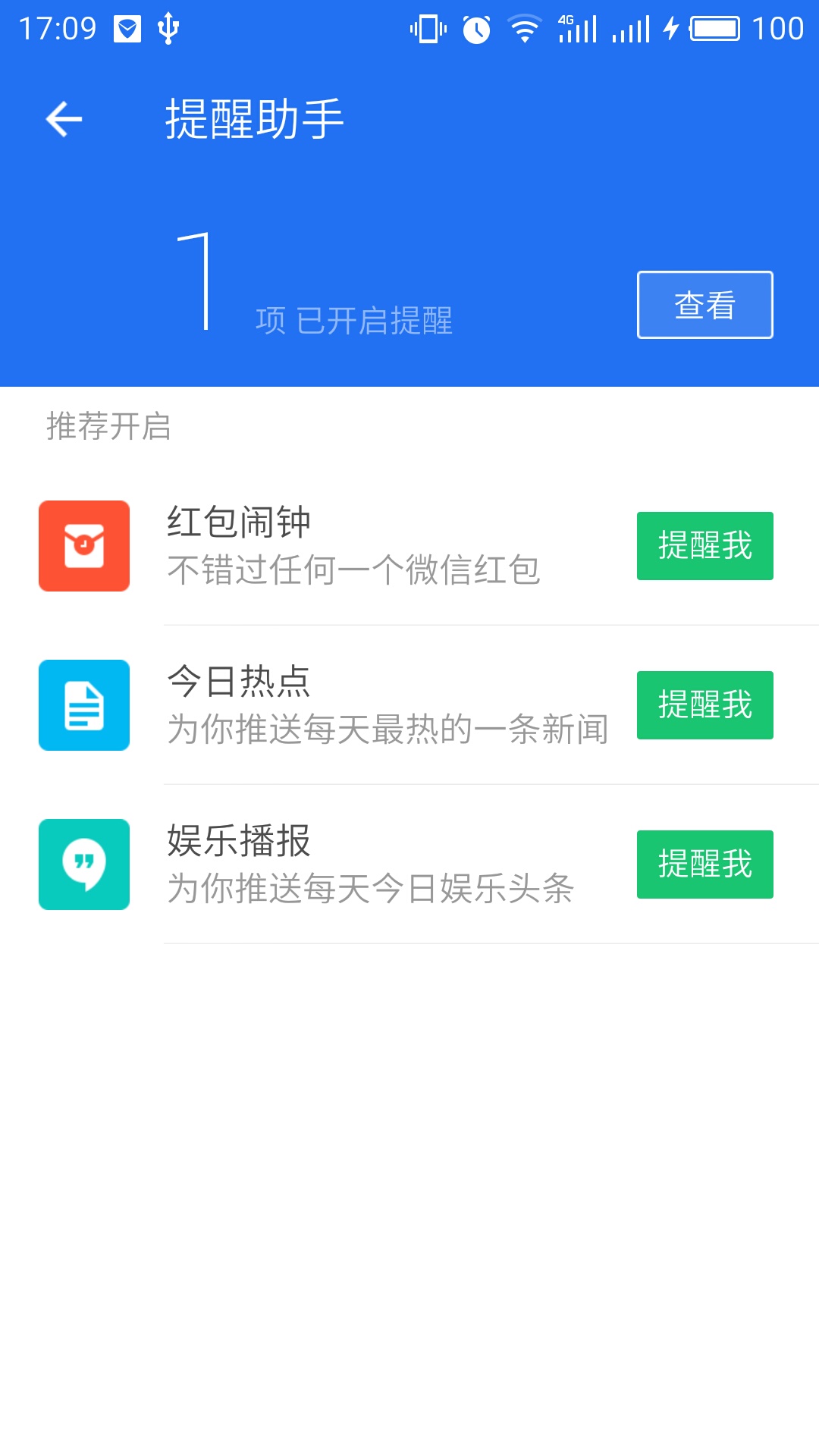 4、在“提醒助手”中還可以開啟“紅包鬧鐘”,幫你快速搶紅包。