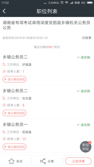【招考公告及職位】每天實(shí)時(shí)權(quán)威發(fā)布全國(guó)公職類(lèi)報(bào)考公告、職位信息【職位智能匹配】根據(jù)個(gè)人簡(jiǎn)歷 精準(zhǔn)匹配適合用戶(hù)的職位