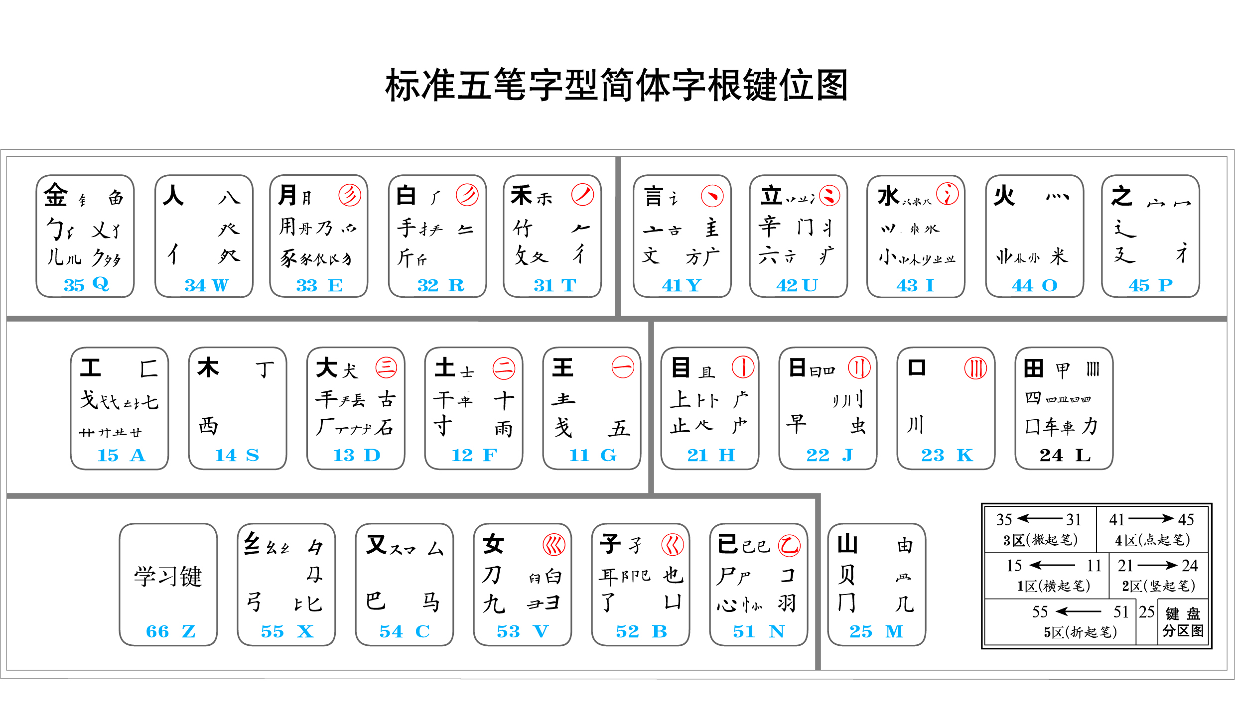 【五筆字型下載86版簡(jiǎn)體字根鍵位圖