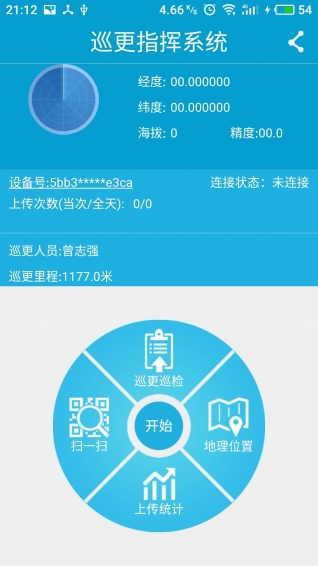 3,巡更管理:開(kāi)啟巡更,實(shí)時(shí)定位,展示當(dāng)前位置信息,當(dāng)天的巡更路線軌跡可在地圖上查看