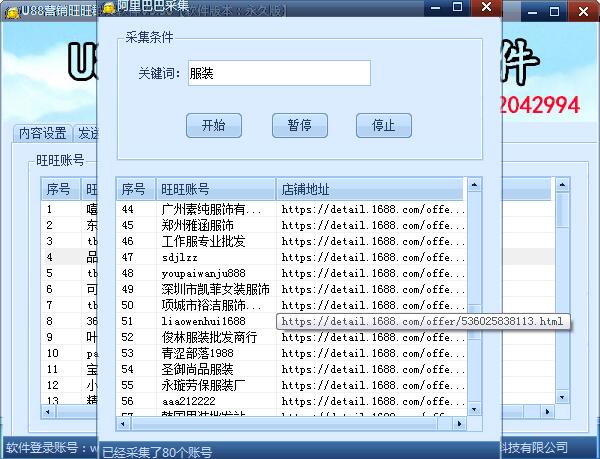 旺旺群采集:只需要輸入關(guān)鍵詞即可采集大量的旺旺群,支持全自動(dòng)加旺旺群;