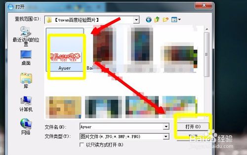 在自己電腦中的文件夾中選擇一張圖片點(diǎn)擊打開