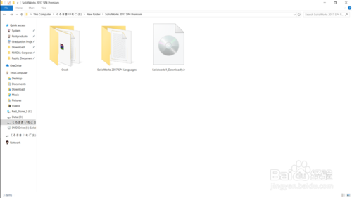 下載提供的SolidWorks2018SP0軟件解壓文件:SolidWorks2018SP0Languages(語言文件夾)、Solidworks.iso(安裝文件夾)、Crack(破解文件夾)