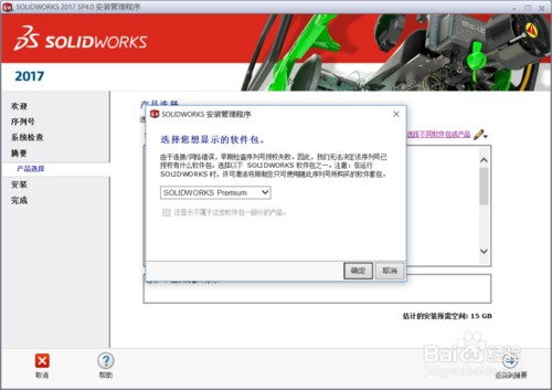2.1摘要-產(chǎn)品:點擊下拉列表更改為“solidworkspremium”,單擊確定以繼續(xù)。