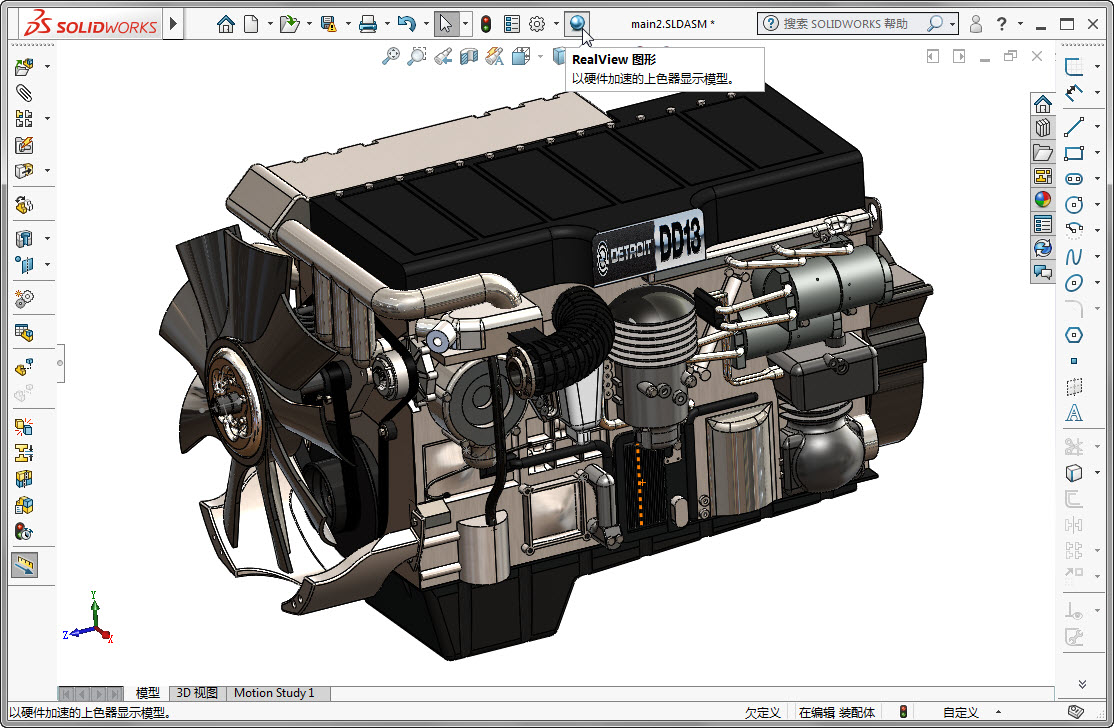 我們打開SolidWorks,然后在其中繪制好要渲染的三維模型。要渲染的話,首先需要設(shè)置三維模型的材料。在軟件左側(cè)的屬性欄中,右鍵單擊“材質(zhì)”,選擇“編輯材料”。
