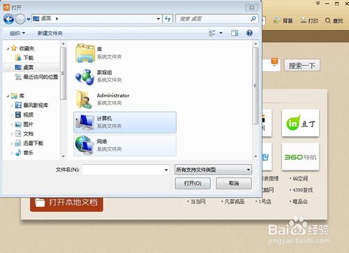 點(diǎn)擊“打開(kāi)本地文檔”以后,頁(yè)面彈出了一個(gè)需要我們選擇路徑的對(duì)話框,我們可以根據(jù)實(shí)際情況,點(diǎn)擊想要打開(kāi)的文件的路徑,如圖所示。