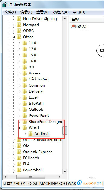 ·將“word”文件下的Addins(放word加載項(xiàng)的)重命名為Addins1,鼠標(biāo)左鍵在空白區(qū)域左擊一下就保存了,退出注冊(cè)表,重新測(cè)試一下,是不是完美解決了。