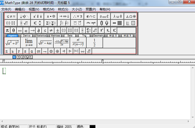 6.進(jìn)入到MathType公式編輯器的編輯窗口,則可正常使用軟件,對自己需要的公式等進(jìn)行編輯。