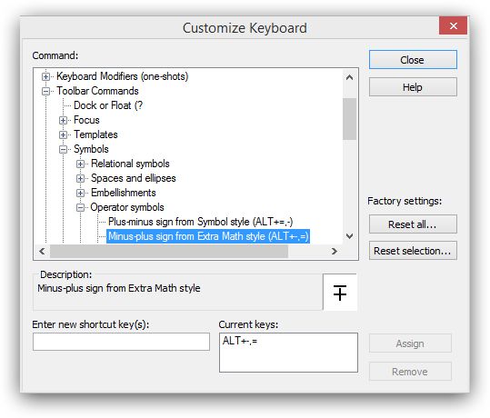 3.按鍵插入符號(hào)或表達(dá)式:將符號(hào)、模板或表達(dá)式與鍵盤快捷方式相關(guān)聯(lián),以便日后可以使用鍵盤插入。