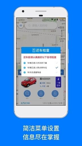 由于車輛熄火、停到場(chǎng)站時(shí)還需要一個(gè)上報(bào)信息的過程,在這里敬請(qǐng)用戶多等一分鐘,待上報(bào)信息正常無誤,即可點(diǎn)擊“一鍵還車”。