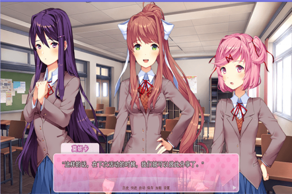 嗨,這里是莫妮卡!歡迎加入文學(xué)部!我一直夢想著,可以為我熱愛的事物做些特別的事情。既然你成為了社團的一員,那么你就可以幫我在這個可愛的游戲里實現(xiàn)夢想!