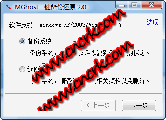 程序功能:實(shí)現(xiàn)一鍵備份還原系統(tǒng),Windows下、PE、DOS下操作均可;