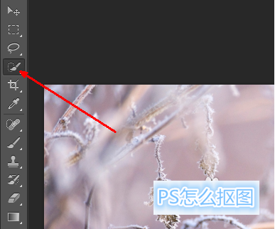第二步、如果你并不追求完美的效果,而只是想快速一些,就選擇快速選擇工具,如圖所示。用鼠標點擊一下這里。