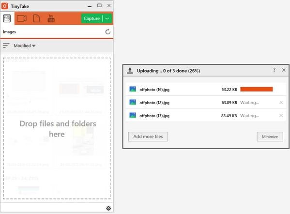 1、通過在TinyTake文件選項(xiàng)卡上拖動它來快速共享文件的最簡單方法