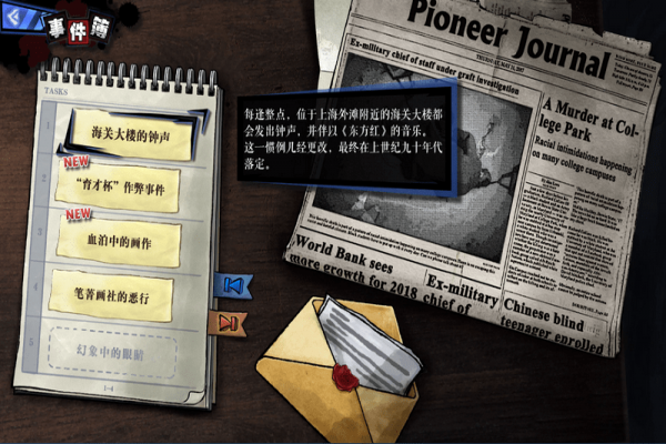 在故事推進(jìn)中,通過(guò)對(duì)話、電視節(jié)目、論壇信息等各種途徑都可以獲取情報(bào)與疑點(diǎn),各種情報(bào)會(huì)構(gòu)成解決事件的關(guān)鍵線索