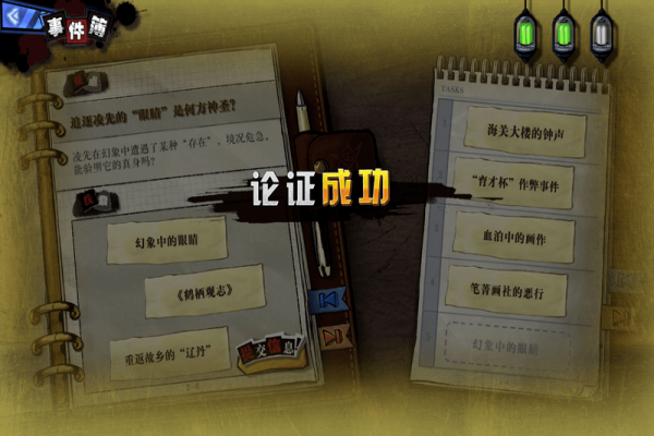 將情報(bào)與疑點(diǎn)進(jìn)行組合實(shí)現(xiàn)對(duì)疑點(diǎn)的論證,論證的成功與否會(huì)直接影響故事的走向,請(qǐng)通過(guò)推理,得出成功的論證結(jié)果吧