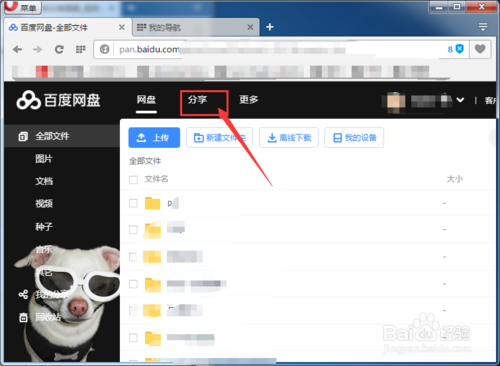首先登錄你的百度云,需要進(jìn)行分享的資源所在的百度云。點(diǎn)擊分享,進(jìn)行分享界面。