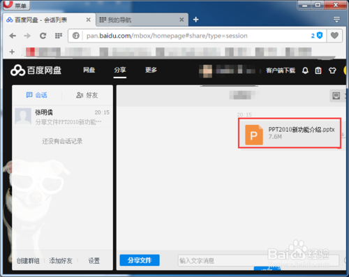 會(huì)跳出來一個(gè)對話界面,如圖中所示,接著選中“分享文件”;