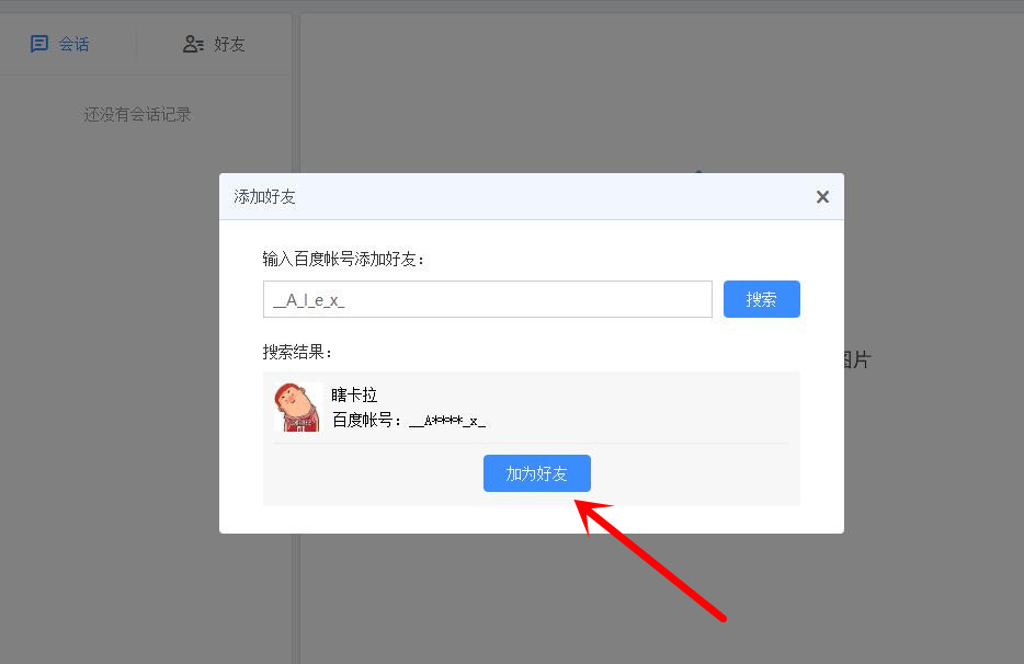 在分享界面有一個(gè)簡易的好友管理界面,可以添加新的百度好友。