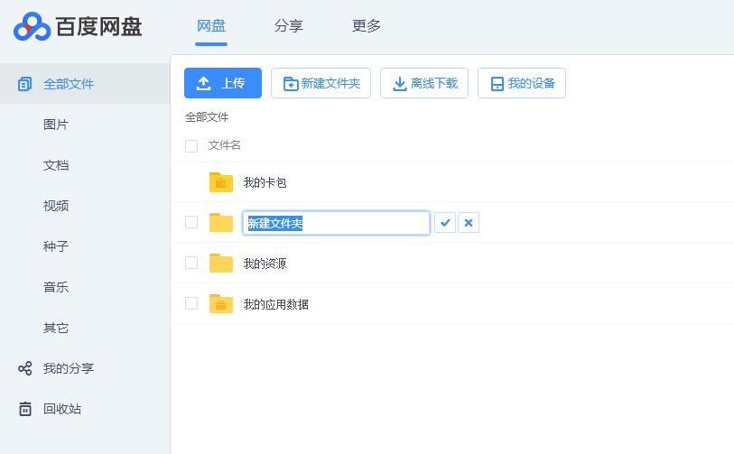 新登入百度網(wǎng)盤默認(rèn)的界面是列表模式類似電腦資源管理器,新建個(gè)文件夾演示