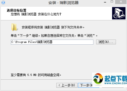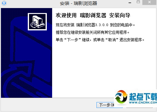 1、瑞影瀏覽器官方下載后,解壓下載好的安裝包,單擊【下一步】。