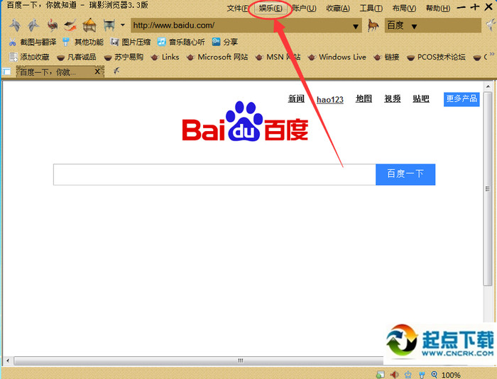 1、首先打開瑞影瀏覽器,然后在其頂部的菜單中找到【娛樂】。