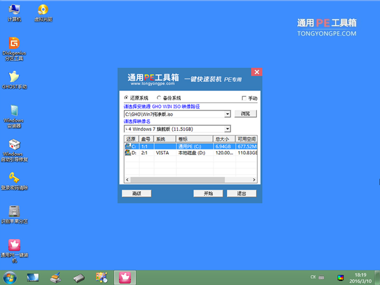 就這樣,很快通用PE一鍵U盤安裝 Win7 系統(tǒng)完畢!